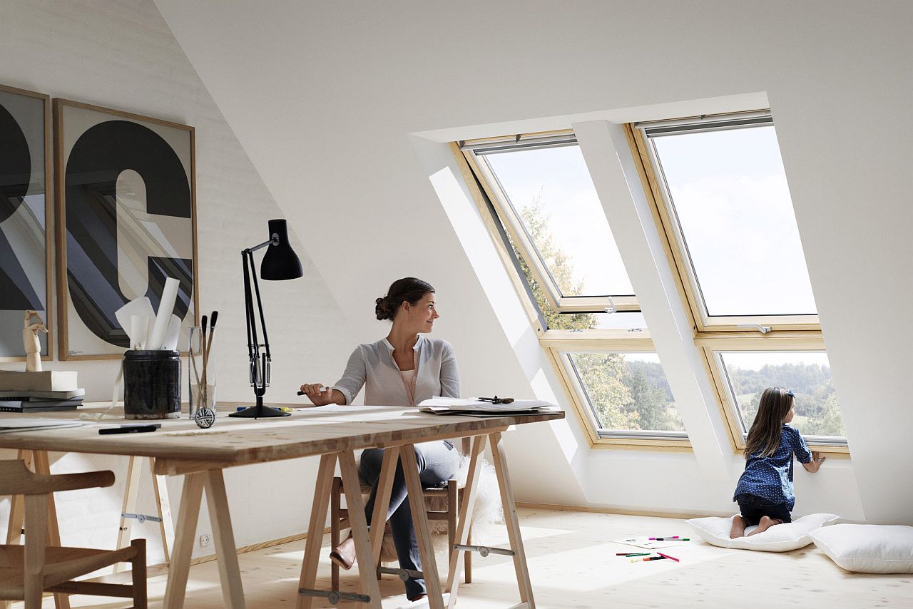 Großzügige Fensterlösungen für das Obergeschoss bieten Kindern einen weiten Ausblick. Sicherheitszubehör von Velux sorgt dafür, dass Eltern sich keine Sorgen machen müssen - auch wenn die Kids alleine im Zimmer sind.